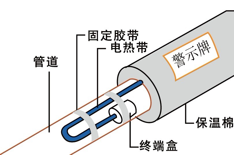 伴熱電纜固定時因預留活動空間。避免熱漲冷縮導致電熱帶斷路。電熱帶與接線盒連接處可考慮預留線1.5米,方便日后維護檢修