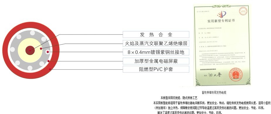 環(huán)瑞畜牧養(yǎng)殖采暖發(fā)熱電纜結(jié)構(gòu):