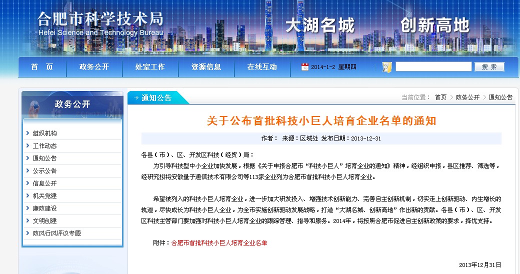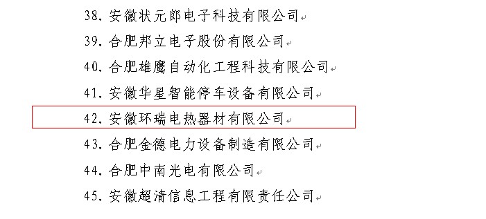 科技小巨人培育企業(yè)是針對有一定生產(chǎn)規(guī)模與研發(fā)能力,并且取得一定量的科研成果的企業(yè)。企業(yè)入選資格需經(jīng)過經(jīng)組織申報(bào),縣區(qū)推薦、篩選等環(huán)節(jié)。安徽環(huán)瑞憑借多年電伴熱帶、發(fā)熱電纜生產(chǎn)技術(shù)研發(fā)獲得了市政府的重視,入選成功。以下為合肥科技局網(wǎng)通知公司內(nèi)容: