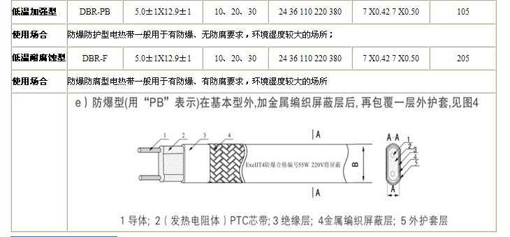 2.工業(yè)性電伴熱帶帶寬12mm-13.5mm ,具體參照上述結(jié)構(gòu)對照表
