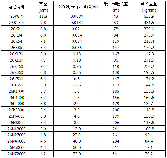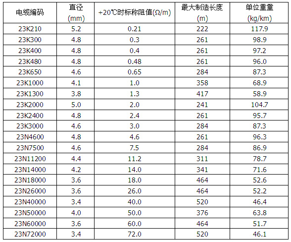 表格2 加熱電纜規(guī)格 (600V 雙芯)