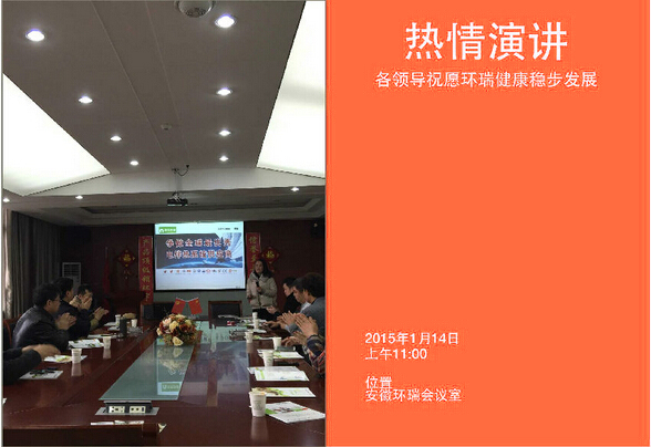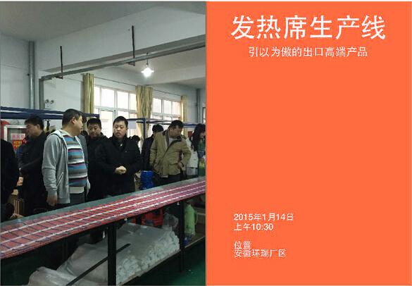 2015114日新年伊始,環(huán)瑞迎來(lái)了新疆烏蘇市相關(guān)領(lǐng)導(dǎo)蒞臨考察,烏蘇市相關(guān)領(lǐng)導(dǎo)在環(huán)瑞董事長(zhǎng)計(jì)成志陪同下參觀了環(huán)瑞電伴熱帶、發(fā)熱地席和環(huán)瑞現(xiàn)代化展廳,并在環(huán)瑞會(huì)議時(shí)聽(tīng)取環(huán)瑞員工對(duì)環(huán)瑞未來(lái)發(fā)展的相關(guān)介紹。