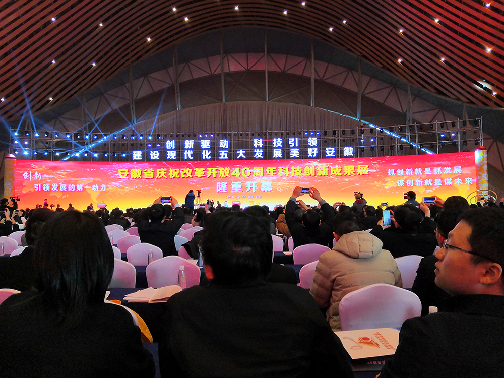 12月18日,安徽省慶祝改革開放40周年科學創(chuàng)新成果展在合肥濱湖國際會展中心拉開序幕,此次展會以“創(chuàng)新驅動,科技引領,建設現(xiàn)代化五大發(fā)展美好安徽”為主題,集中展示安徽省改革開放40年來的創(chuàng)新歷程、創(chuàng)新舉措、創(chuàng)新成就。