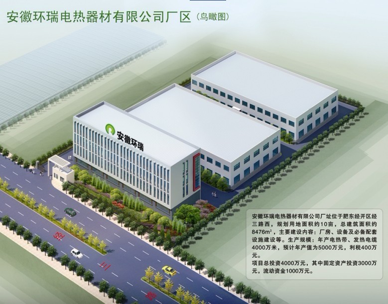 2012年6月05日肥東新城開發(fā)區(qū)領(lǐng)導及安徽環(huán)瑞電熱器材有限公司全體員工聚集在肥東開發(fā)區(qū),進行新廠房開工剪彩儀式,獲得圓滿成功。該廠總建筑面積約8476平方米,主要建設(shè)內(nèi)容:廠房、設(shè)備配套設(shè)施建設(shè)等,項目總投資4000萬余元。