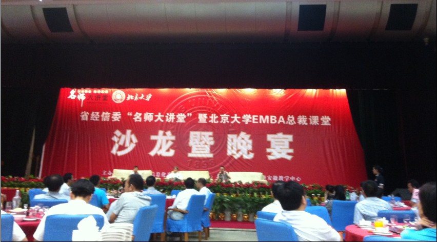 由省經(jīng)信委、北京大學(xué)邀請(qǐng)名師大講堂知名講師,協(xié)作舉辦的EMBA總裁課程,眾多企業(yè)的管理層人員齊聚一堂交流企業(yè)管理經(jīng)驗(yàn)。此次授課為期2天,并與今日落下帷幕。晚宴上,省信委領(lǐng)導(dǎo)出席主持,話語(yǔ)中透露著對(duì)各個(gè)行業(yè)管理人員的期許,正是因?yàn)橛心銈兊恼_的領(lǐng)導(dǎo),才能延續(xù)企業(yè)的活力,才能振興國(guó)民經(jīng)濟(jì)。晚宴上處處洋溢著積極上進(jìn)的熱情氛圍。